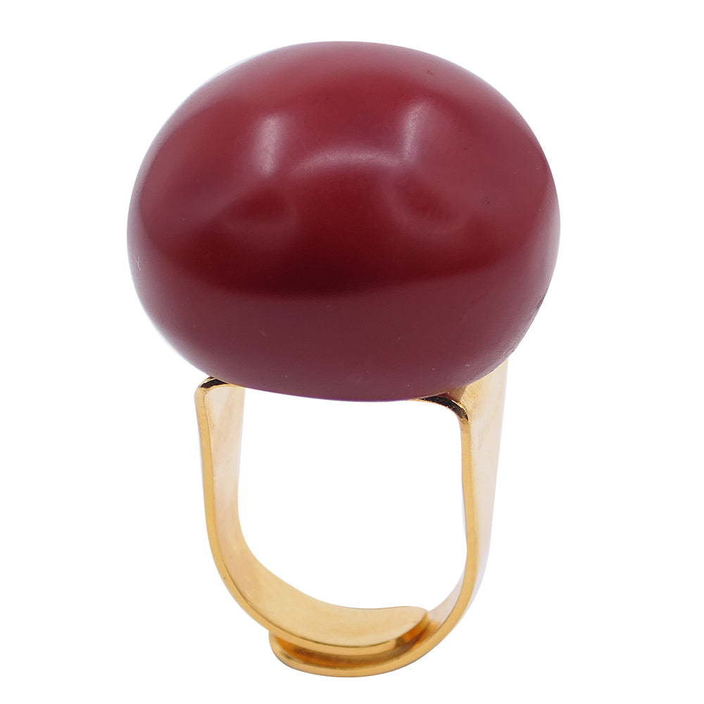 Son superbe cabochon de forme ronde est fixé à sa monture en métal doré ajustable à toutes les largeurs de doigts.