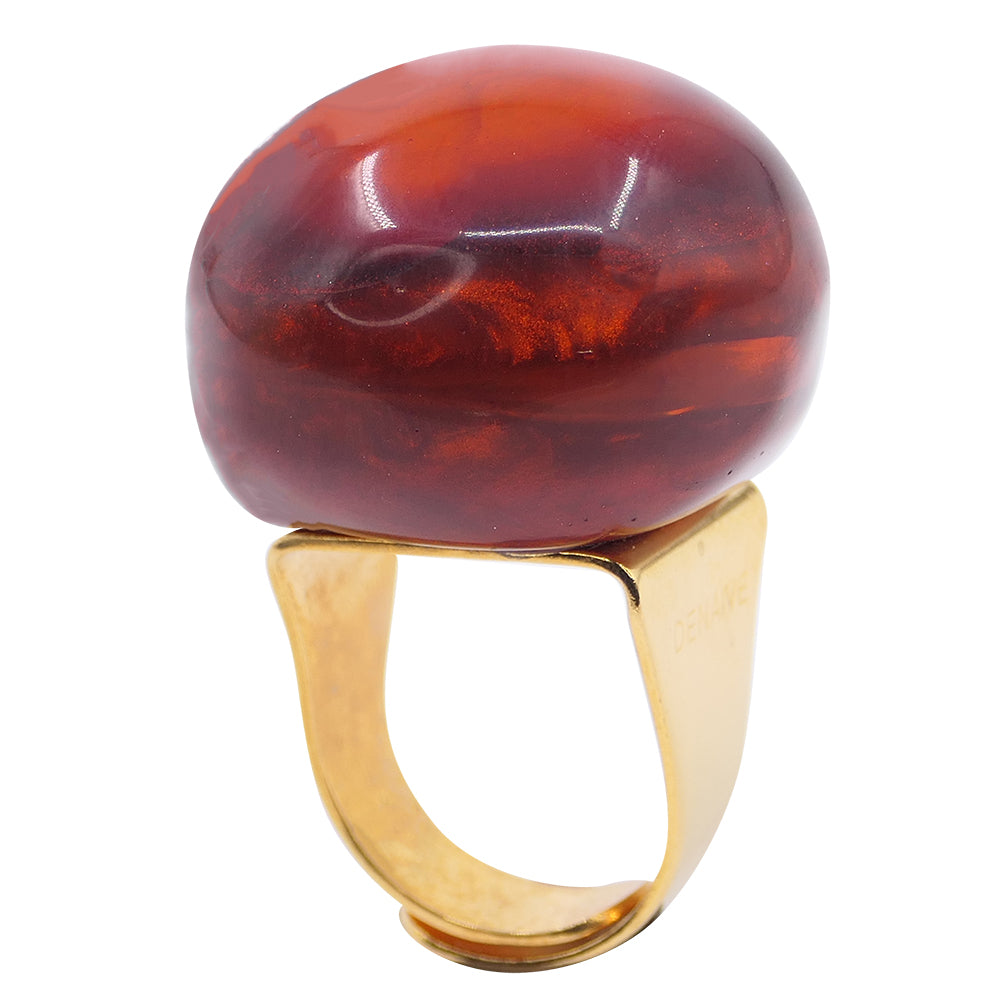 Ornée d'un élégante boule de résine, la bague en résine, Ellaine propose un précieux look sublimant le méticuleux travail de la résine artisanale polie à la main signée du créateur Dominique Denaive.