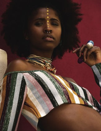 Dominique Denaive jewelry is featured in the fashion page of JUSTE magazine. The graphic safari theme goes perfectly with the world of jewelry from this winter's renaissance collection.