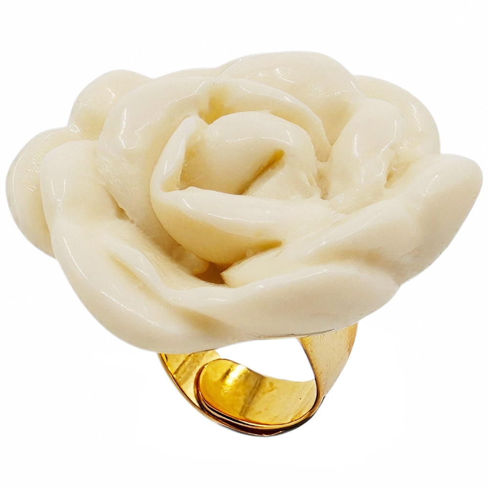 Son superbe cabochon floral est fixé à sa monture en métal doré ajustable à toutes les largeurs de doigts.