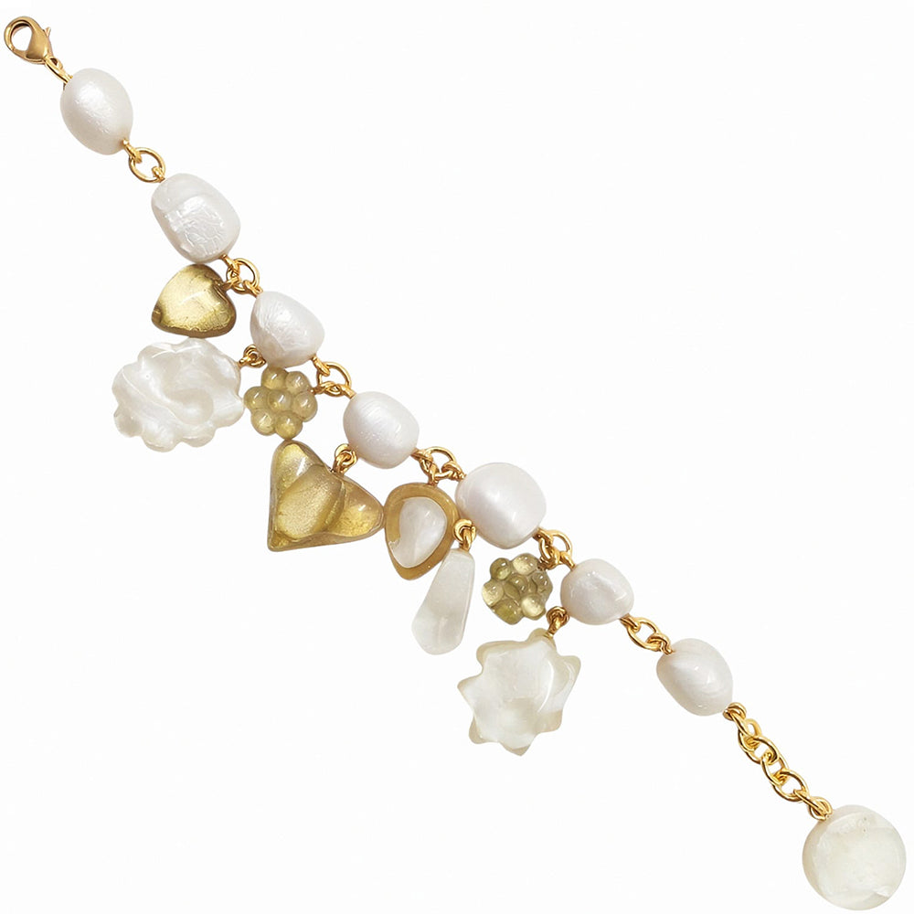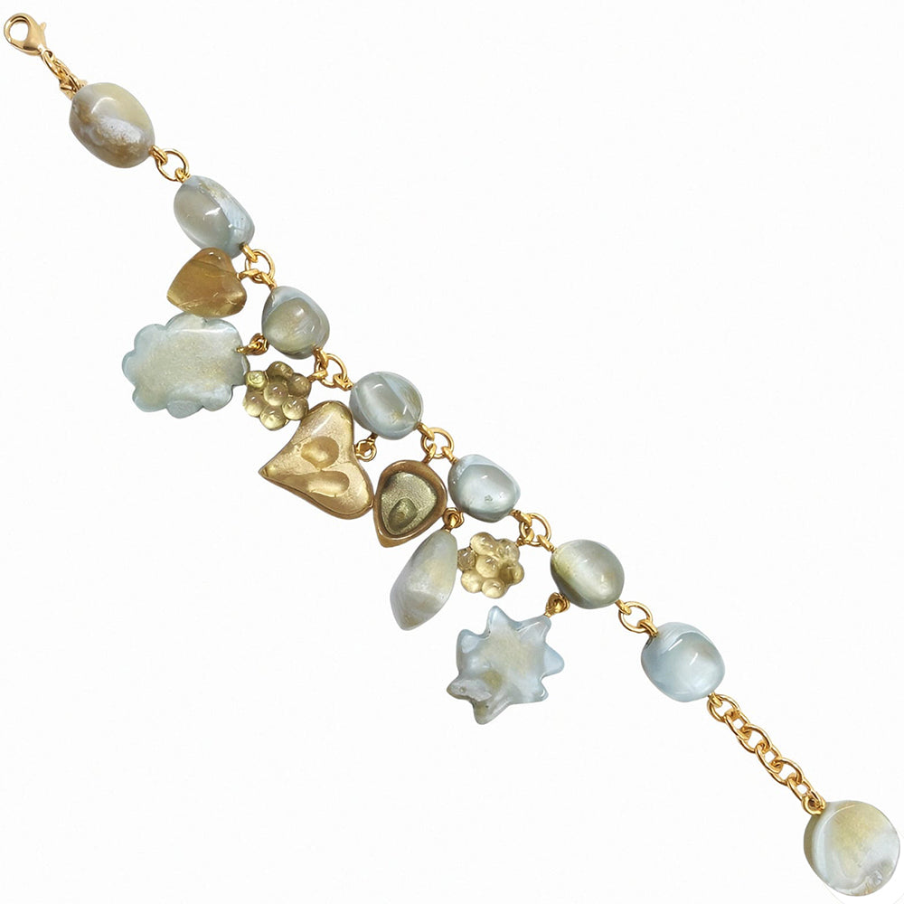 Le foisonnement de charms au style éclectique qui orne ce bracelet fera tinter votre poignet d'une charmante note de fantaisie. Ludique et sophistiqué, ce bracelet agrémentera votre allure d'une précieuse touche de chic bohème.