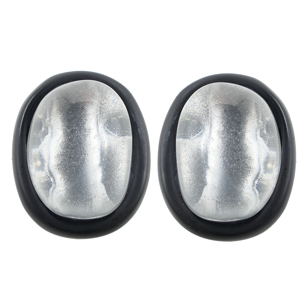 Ces deux cabochons de résine artisanale soulignés d'un liseré noir orneront vos oreilles d'une précieuse touche de chic contemporain pour signer une allure subtile et distinguée.
