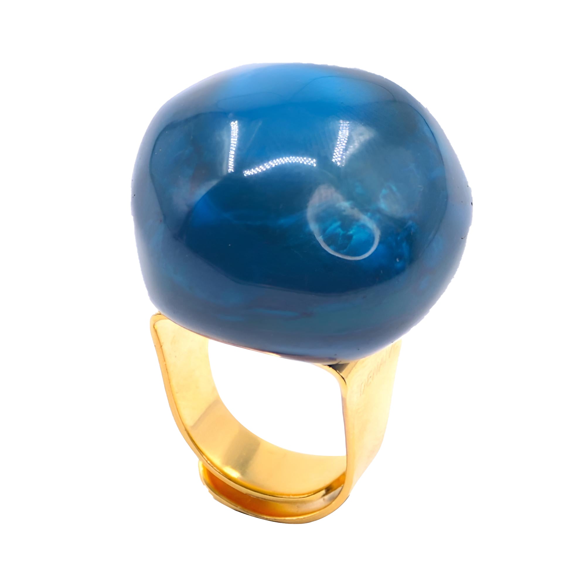 Son superbe cabochon de forme ronde est fixé à sa monture en métal doré ajustable à toutes les largeurs de doigts.