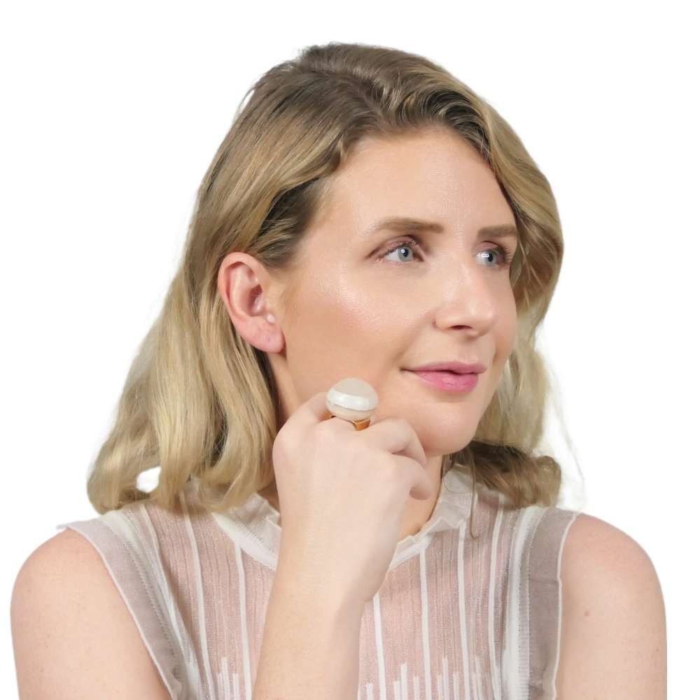 Sa brillance révèle toute en subtilité les marbrures des poudres de nacre et d'or.