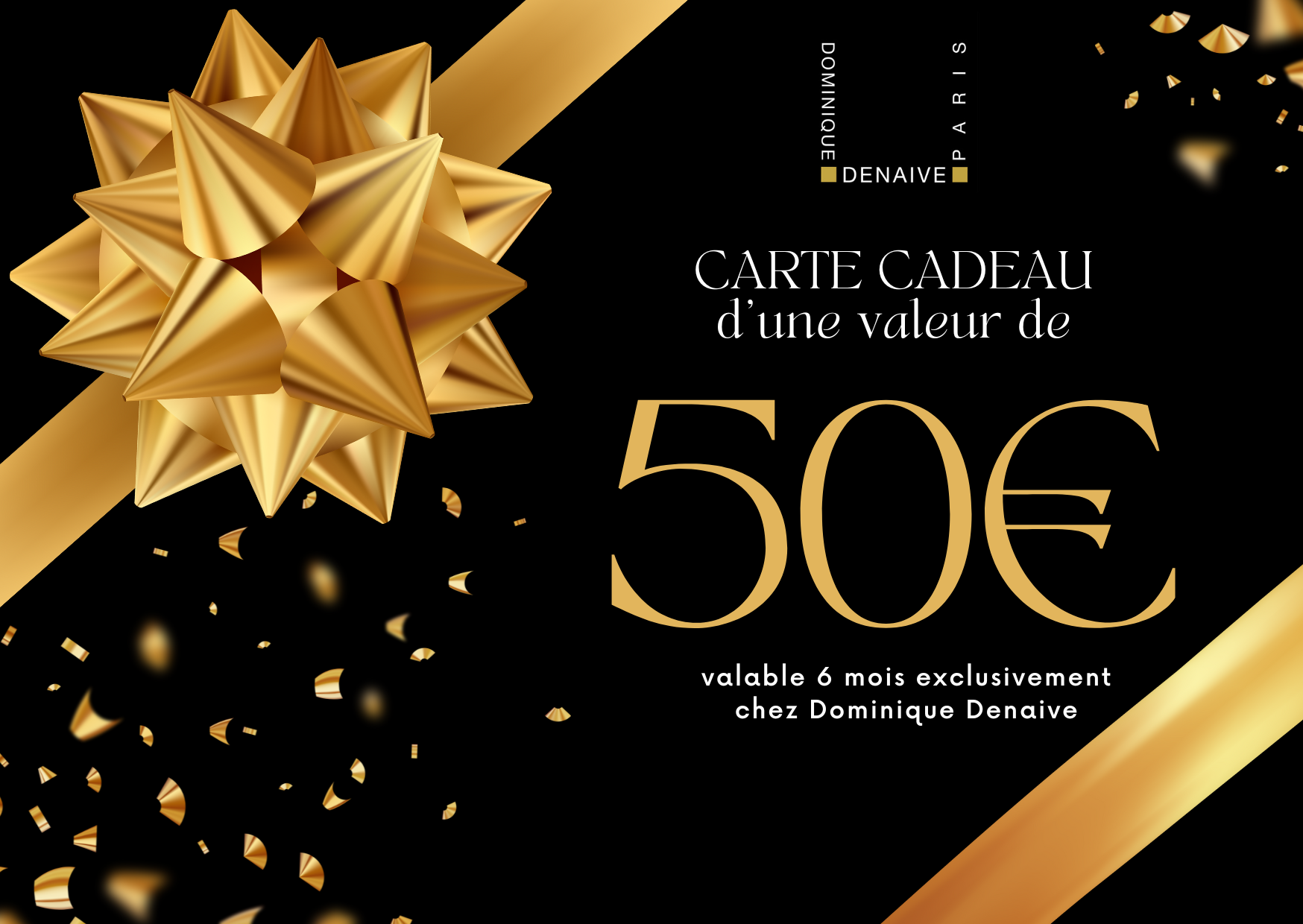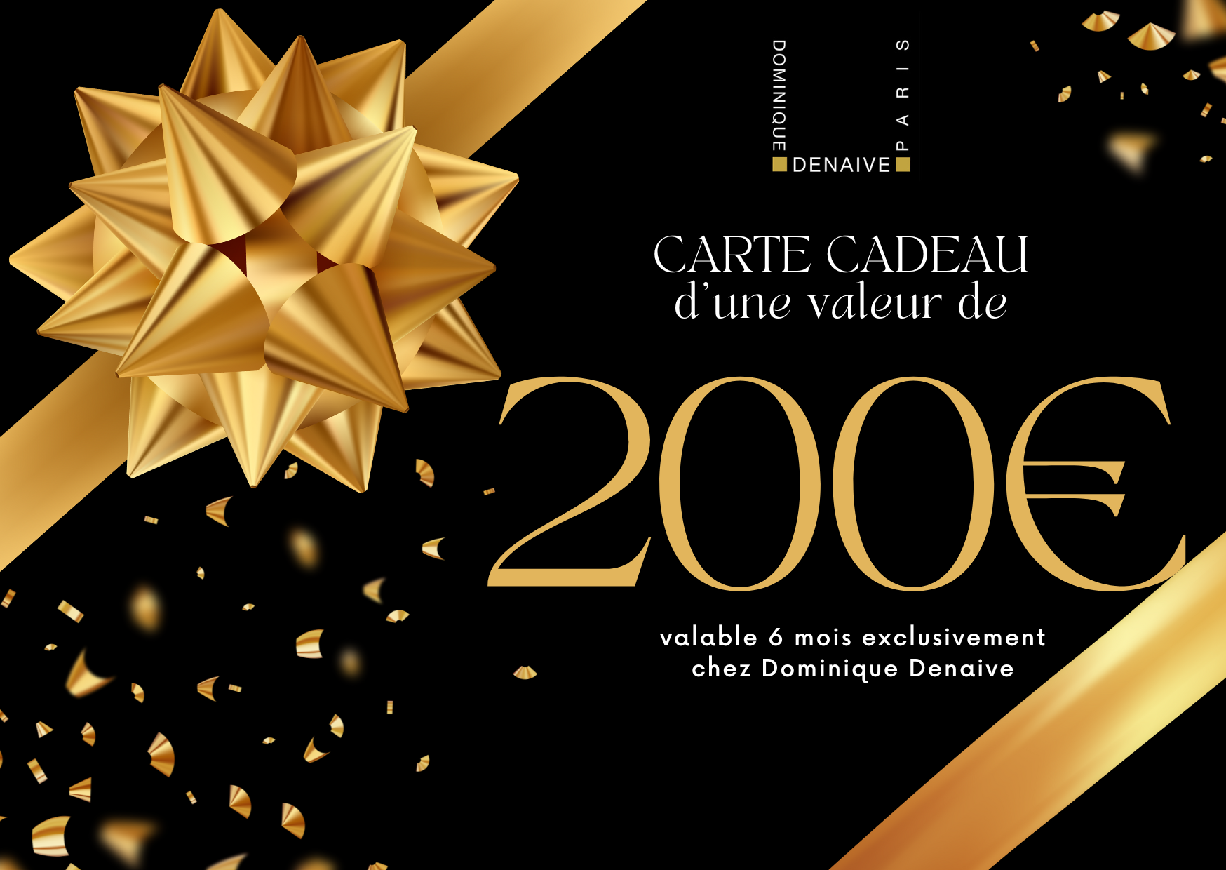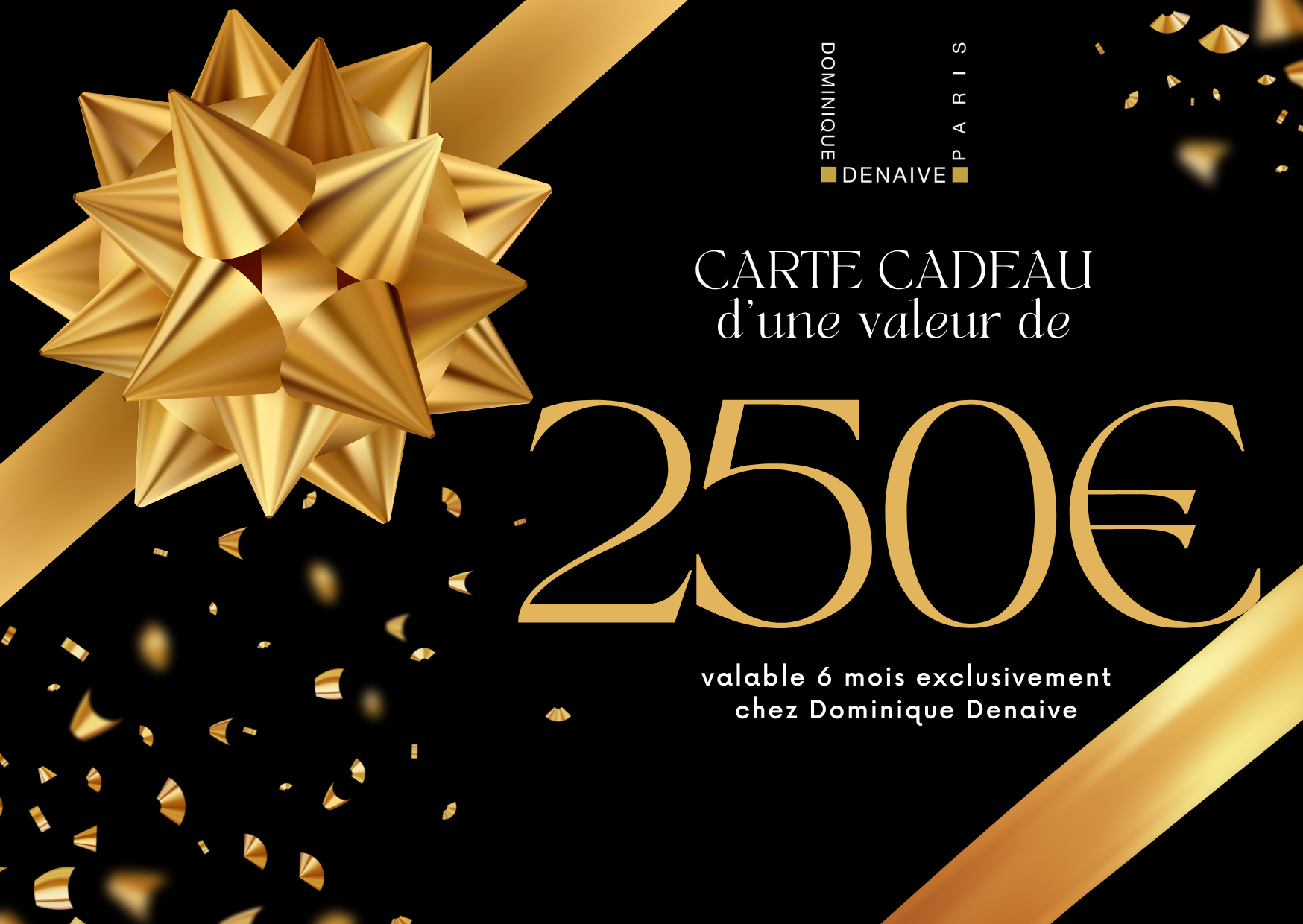 Elle doit être dépensée dans son intégralité. Ainsi la boutique DOMINIQUE DENAIVE n’effectue pas d’avoir sur les cartes cadeaux.