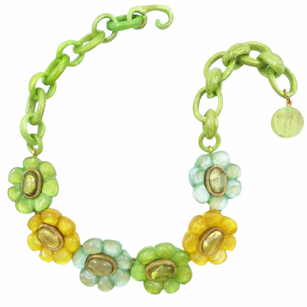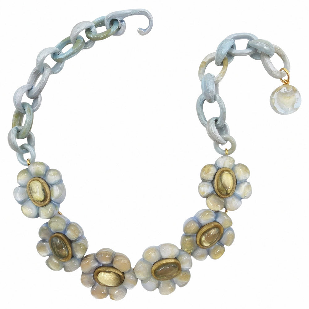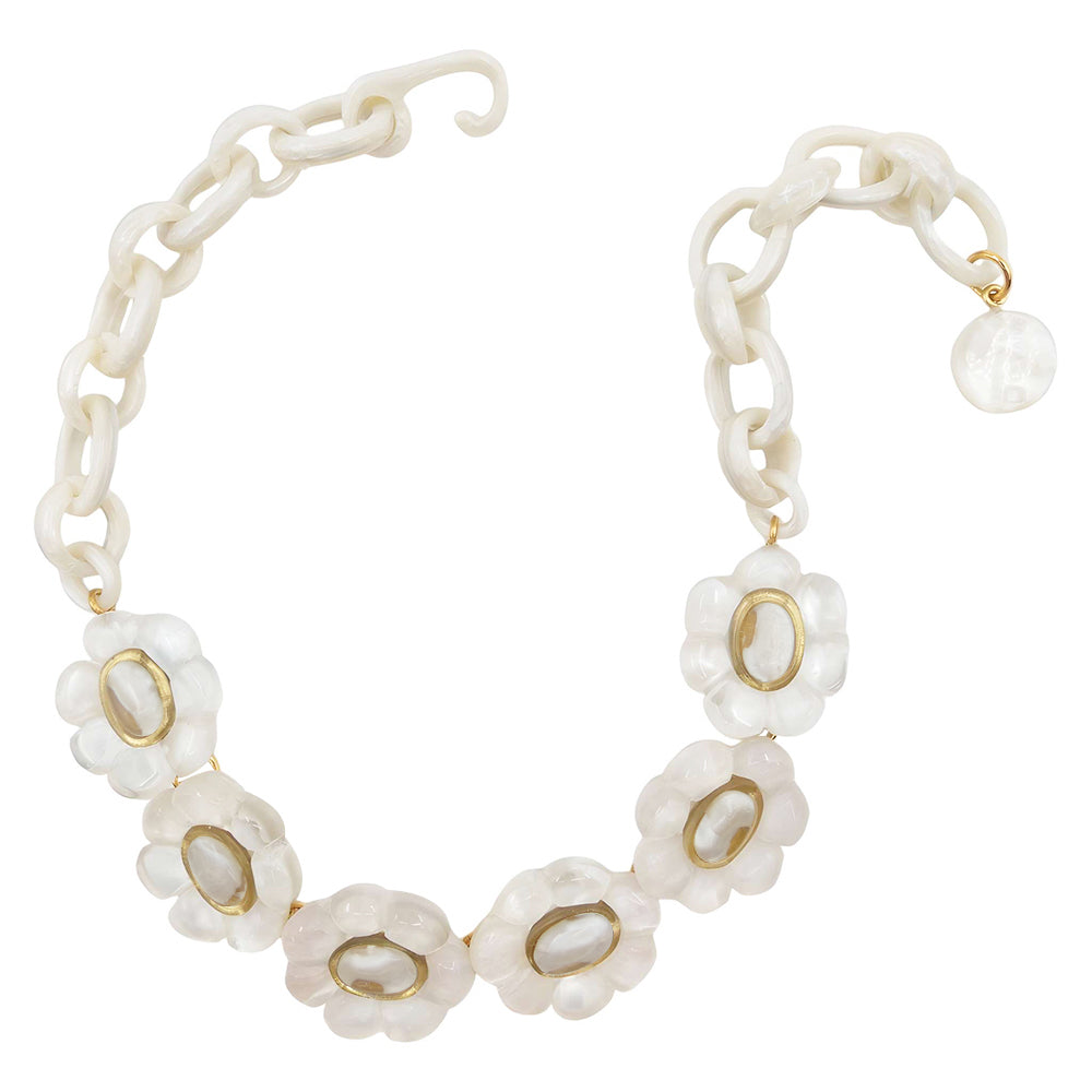 La pièce indispensable de la nouvelle collection, le superbe collier court Daphné est composé d'un rang de cabochons en forme de fleurs dont le charme délicat ornera d'une précieuse note de chic floral votre décolleté et séduira la totalité de votre entourage.
